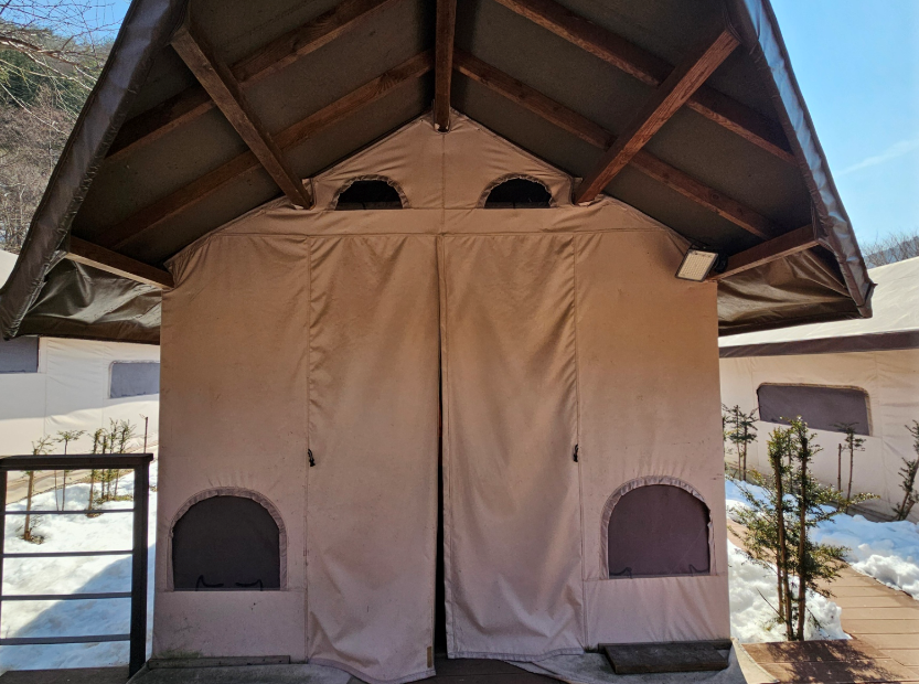 하우스와 가까운 C13산막텐트는 글램핑과 유사한 풀옵션 텐트입니다.