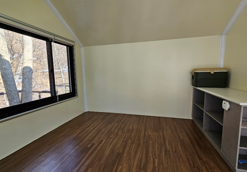실내에는 아이스박스 하나 댕그러니 있습니다. 다른 것은 아무것도 없어요 침구 세트도 제공되지 않으니 개인 침구류 꼭 챙기셔야 합니다.