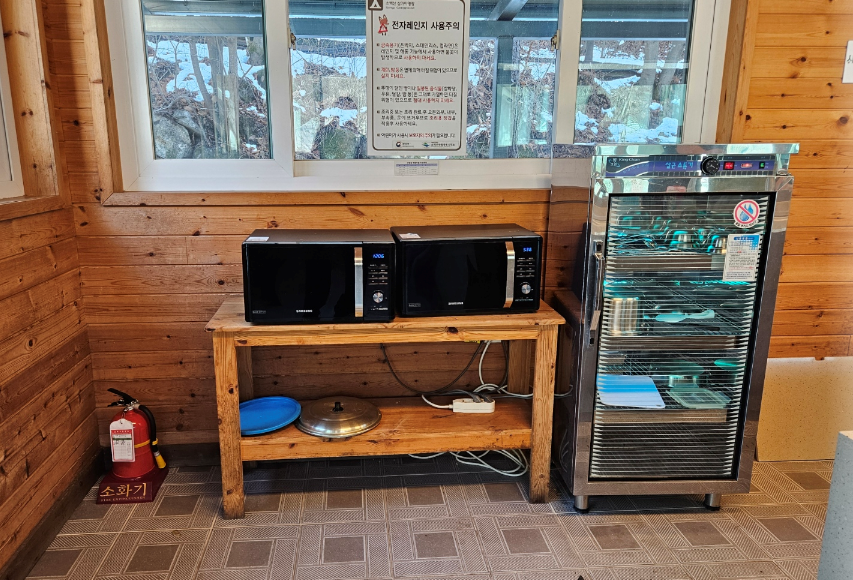 식기세척장에는 전자레인지, 식기건조기, 공용 대형냉장고가 갖춰있어서 편리했어요 그리고 세제와 수세미도 있어서 따로 준비해 올 필요가 없었습니다.