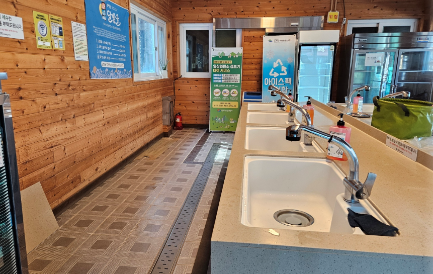 개수대도 곳곳에 있었지만 겨울철에는 동파위험으로 이용을 금지했습니다. 야영장 자체가 그렇게 크지 않아서 식기세척장까지 가는데 그렇게 불편하지는 않습니다.