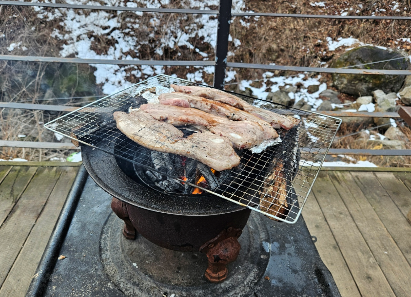화롯대가 그렇게 크지 않아서 숯이 그렇게 많이 필요하지는 않아요 오랜만에 삼겹살 숯으로 구워 먹었는데 역시 최고의 선택이었어요