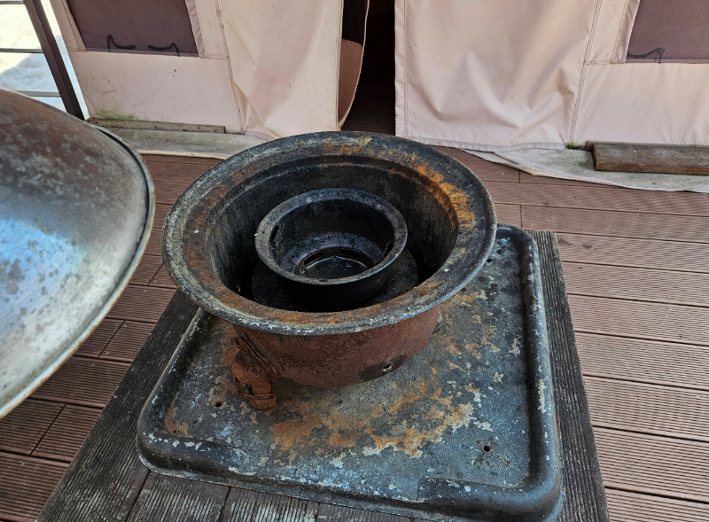 나무 데크 위에 설치된 반영구적인 텐트로 바닥이 단단하고 텐트 내부 공간이 꽤 넉넉합니다. 기본적인 조명이 다 구비되어 있어 개인 조명 전혀 필요없습니다. 내부 콘센트 꽂는 곳이 2곳 정도 있습니다.