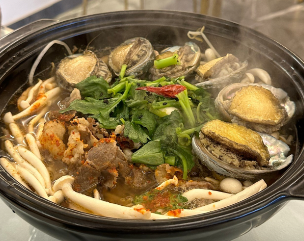 - 봄 세트 구성에 직화 차돌박이 전골 위에 제주 활전복이 추가된 버전