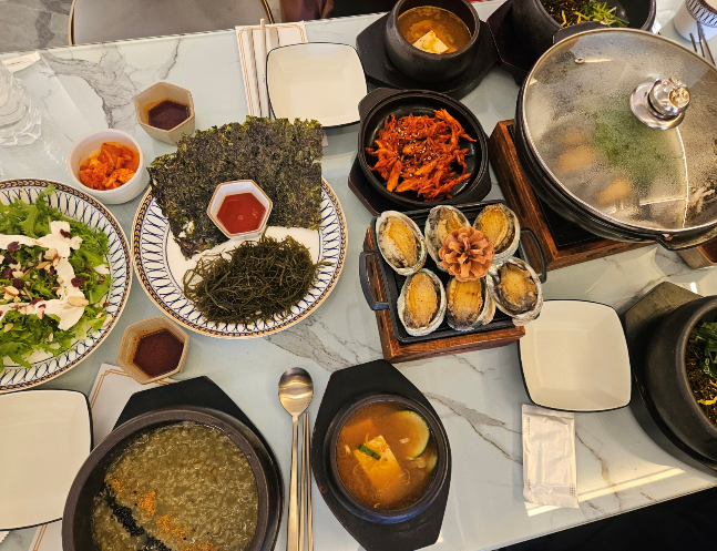 - 전복·고기·나물·샐러드가 골고루 나와서, 느끼함 없이 끝까지 균형 있게 먹을 수 있었어요.