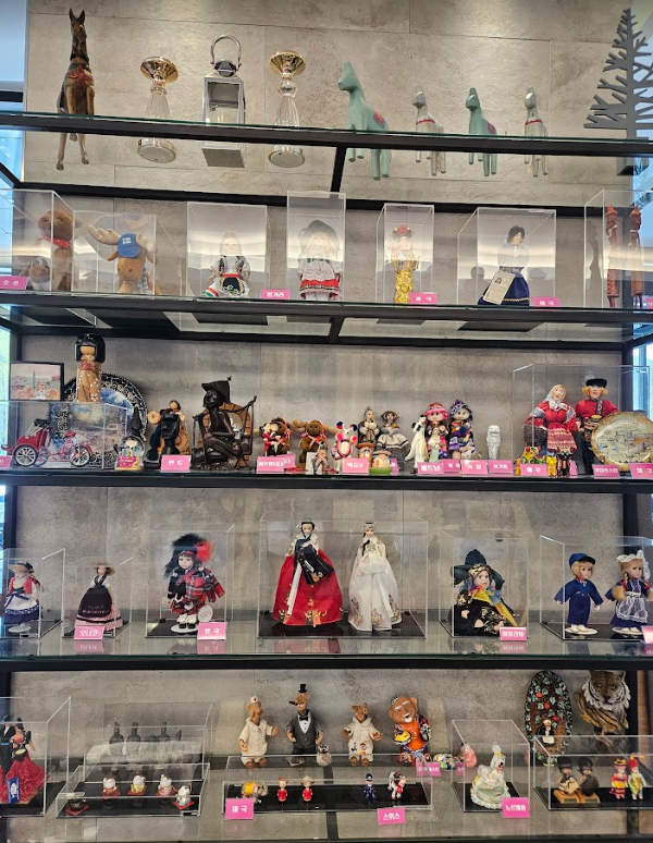 로비에 귀여운 피겨들이 전시되어 있는 공간이 있어요.