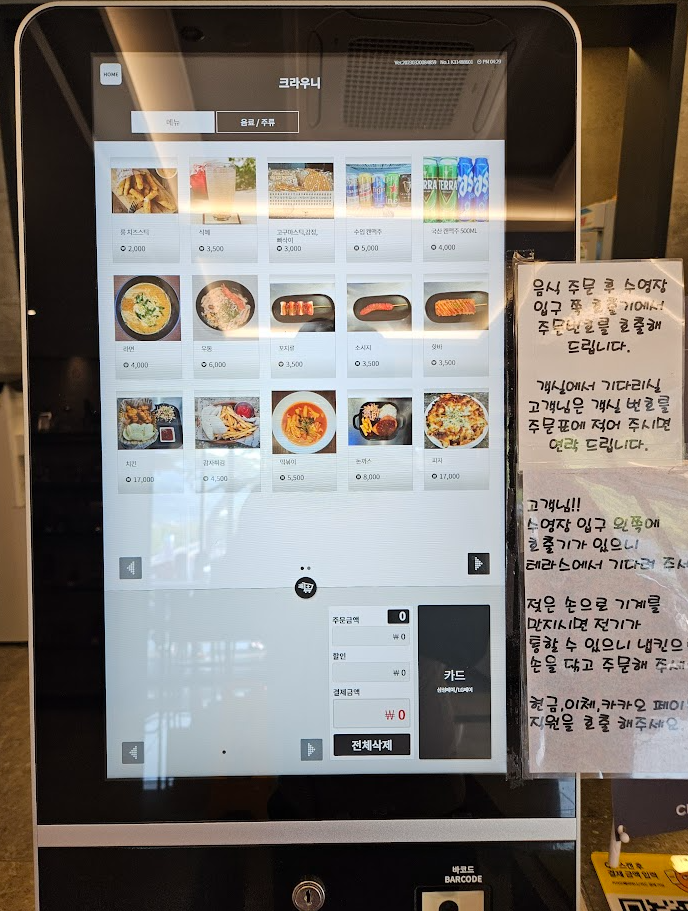 컵라면이 싫다면 라면, 우동, 소시지, 떡볶이 등 키오스크로 주문할 수 있습니다.