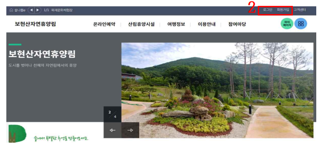 2. 보현산자연휴양림 홈페이지 로그인