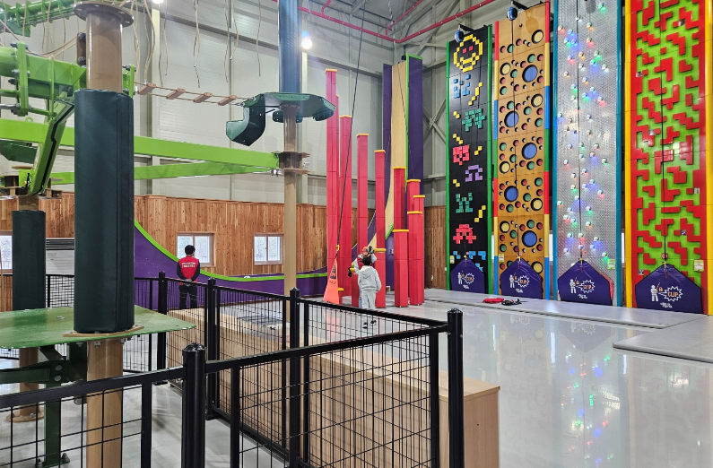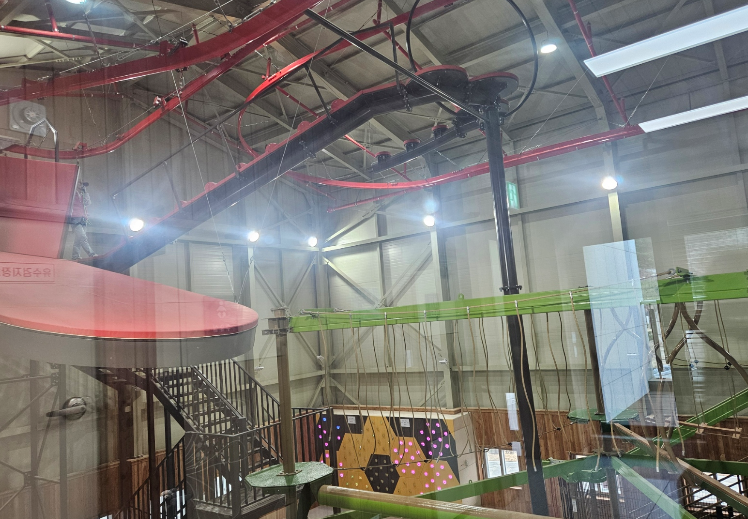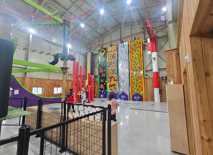 이곳에서는 실내에서 다양한 레포츠 활동을 즐길 수 있어요. 체험관에는 클라이밍, 짚잭, 스카이트레일 등 다양한 레포츠 활동을 즐길 수 있어요. 아이들은 짚잭을 타고 스릴을 만끽했어요