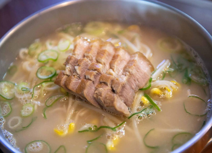 뽀얗게 우려낸 육수에 면을 넣고, 삶은 돼지고기를 얹은 뒤, 입맛에 따라 청양고추와 후춧가루 등을 넣고 먹으면 됩니다. 두툼한 중면에 수육까지 함께 먹으니 한 그릇만으로도 속을 든든하게 채울 수 있습니다. 시원하면서도 배지근한 고기국수 국물은 해장용으로도 인기가 좋습니다. 제주시 이도동에는 국수를 좋아하는 제주 사람들은 물론 관광객들을 불러 모으는 국수문화거리가 있어 밤낮으로 푸짐한 국수를 파는 굿숫집들이 있습니다.