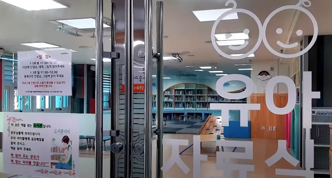자료실 내에 이야기 방이 마련되어 있어 아이들에게 소리 내어 책을 읽어줄 수 있는 공간도 있습니다.