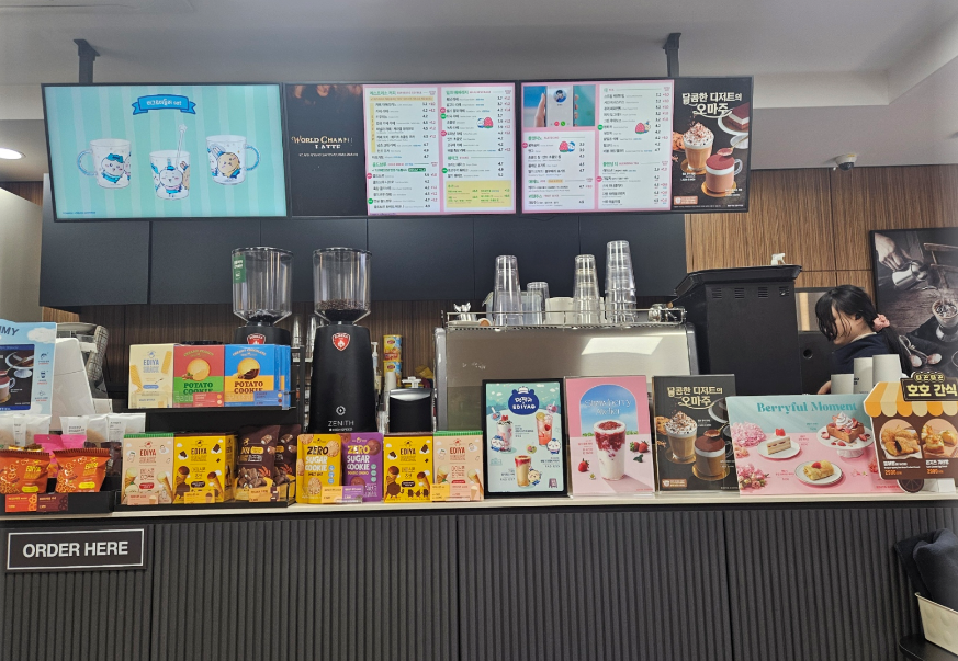 1층 화장실 옆에 카페가 최근에 이디야 카페로 변경되었습니다.