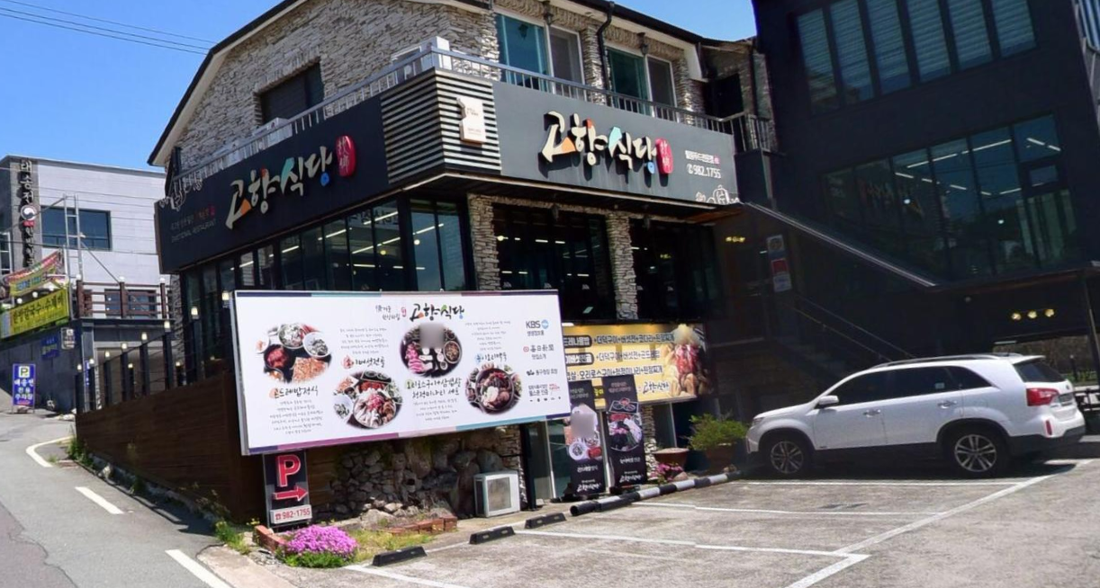 고향식당 팔공본점은 팔공산 케이블카 입구로 향하는 오르막에 위치해 있어요