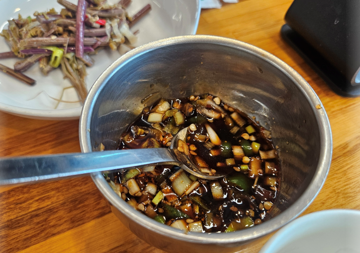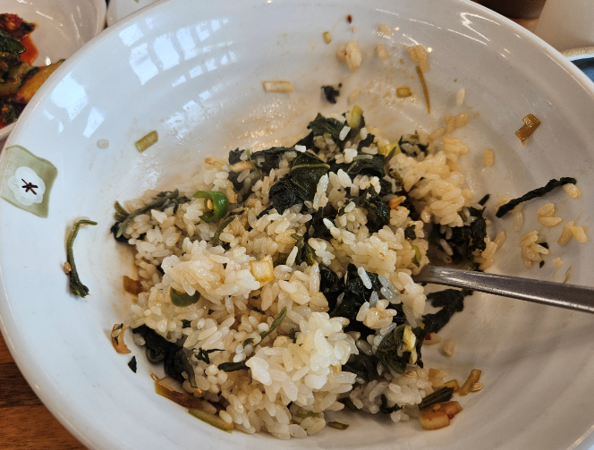 양념간장을 듬뿍 넣어서 슥슥 비벼먹으면 맛있어요 밥을 먼저 푼 후 뜨거운 물을 부어 고소한 숭늉까지 챙겨 먹을 수 있어서 만족스러웠어요