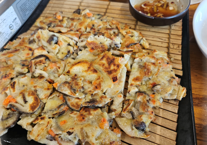 버섯을 얇게 잘라 부쳐낸 버섯전은 바삭한 겉면과 부드러운 속이 어우러져 담백하면서도 고소한 맛이 좋았어요