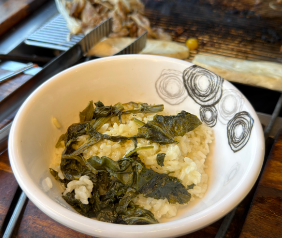 - 가마솥에 지은 곤드레밥을 인원 수에 맞게 덜어서 가져다 주는데,