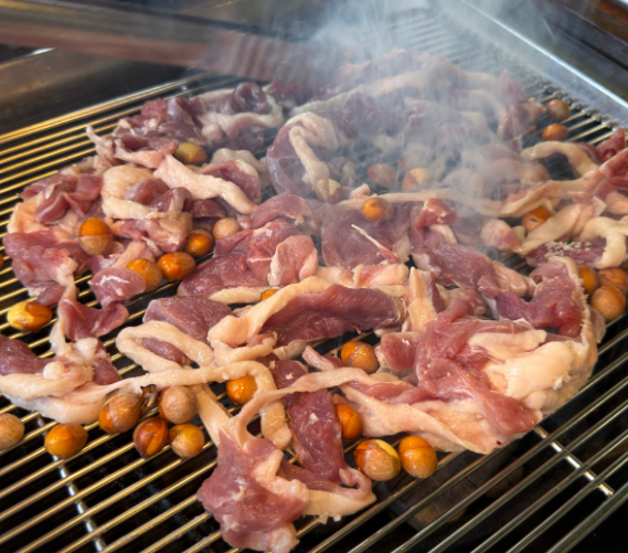 - 불판 위에 올리면 ‘지익~’ 소리와 함께 숯불 향이 확 올라옴