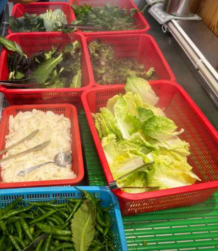 채소는 셀프로 가져다 먹는 시스템이라,