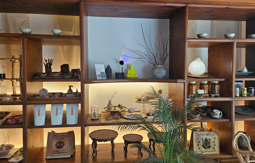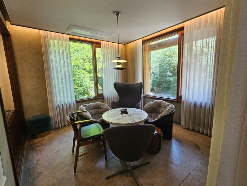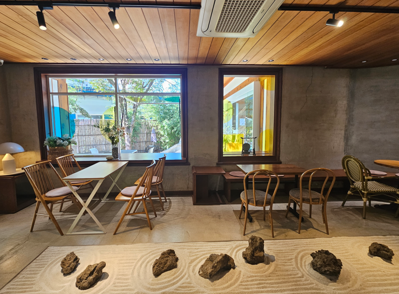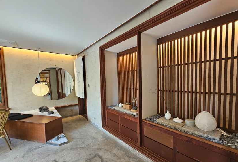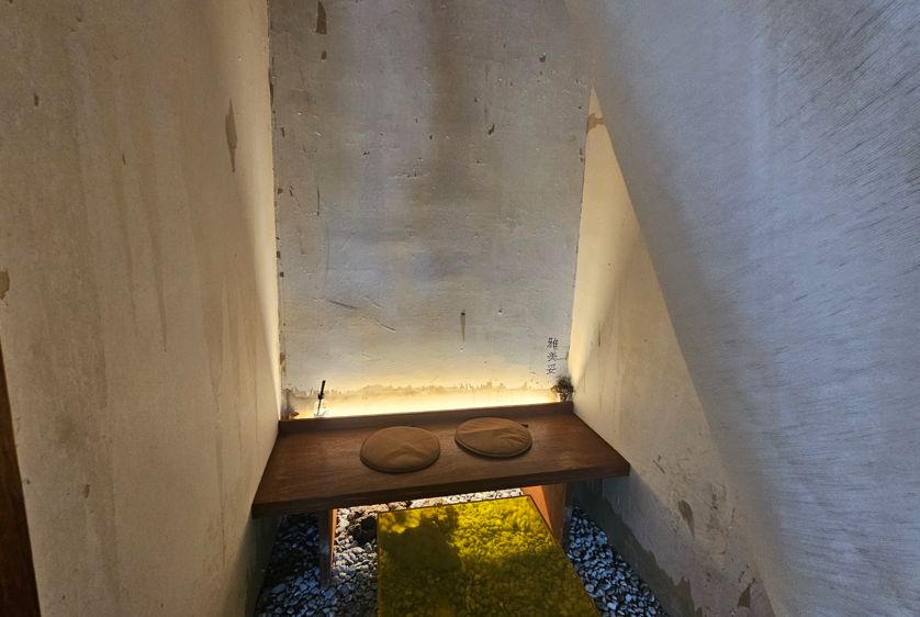 내부 인테리어는 나무를 많이 사용해 따듯하면서도 아늑한 느낌을 줍니다. 곳곳에 배치된 소품들이 일본 감성을 물씬 풍기고, 불교적인 분위기도 느껴져 매우 독특한 공간이었습니다.