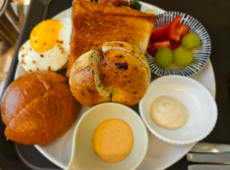 저는 점심시간에 방문을 해서 아미타 베이커리브런치를 주문했습니다. 직접 구워낸 빵 3종과 베이컨, 감자와 에그샐러드, 과일을 곁들인 세트메뉴로 아메리카노까지 합쳐서 2만3천3백원이었습니다.