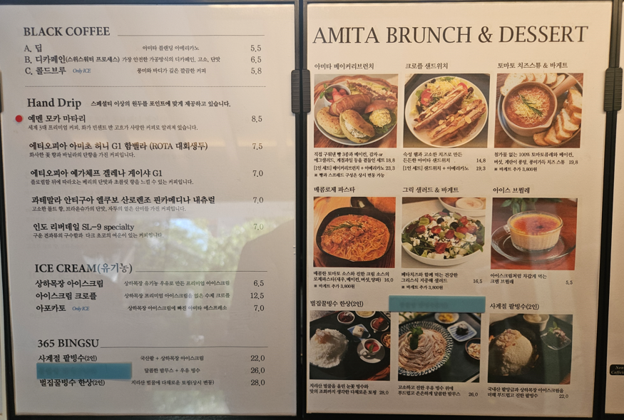 아미타의 시그니처 메뉴는 부드럽고 달콤한 생크림 라떼가 있는 골든슈페너와 오스트리아 빈의 마부들이 즐겨 먹던 커피로 수제 생크림이 올라간 아인슈페너입니다. 고소하면서 진한 커피 맛과 잘 어우러져 이곳의 대표 메뉴로 많은 사람들이 찾는 메뉴라고 사장님이 살짝 이야기해 주셨습니다.