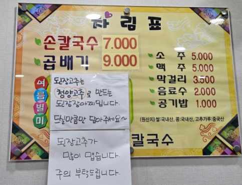 칼국수 7,000원 요즘 같은 시기에 저렴한 가격입니다.