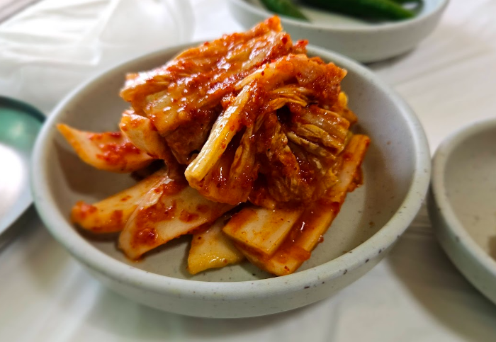 조금 짜지만 있지만 아삭거리는 식감에 칼국수와 완전 잘 어울려서 계속 들어갑니다.