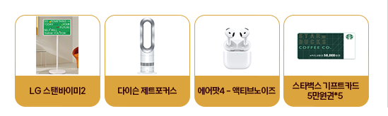 추첨을 통해 LG 스탠바이미2, 다이슨 핫앤쿨, 에어팟4, 스타벅스 기프티콘 등 경품 제공