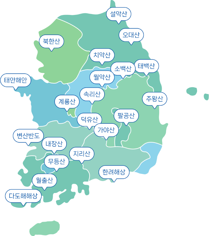 우리나라 국립공원은 1967년 지리산을 시작으로 2023년 팔공산 국립공원 지정까지 총 23개소가 지정되어 있으며 국토면적의 약 7%인 6,852㎢를 차지하고 있습니다. 다도해해상, 한려해상, 태안해안, 변산반도를 제외하면 대부분 산악지역으로 구성되어 있으며 좁은 영토 때문에 국립공원의 면적이 세계적으로 비교했을 경우 상당히 좁은 편입니다. 특이한 점은 누가 보아도 한라산은 국립공원일 것 같은데 한라산은 제주특별자치도에 소속되어 있기 때문에 국립공원공단이 아닌 제주특별자치도에서 관리하고 있습니다. 국립공원은 입장료가 기본 무료이고 야영장 및 생태탐방원 등의 숙박시설이 잘 갖춰져 있어 많은 사람들이 이용하고 있으나 예약하기가 정말 어렵다고 알려져 있습니다.