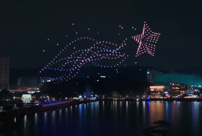 드론 아트쇼는 300여 대의 드론을 활용해 환성적인 연출을 선보이며 큰 호응을 얻었습니다.