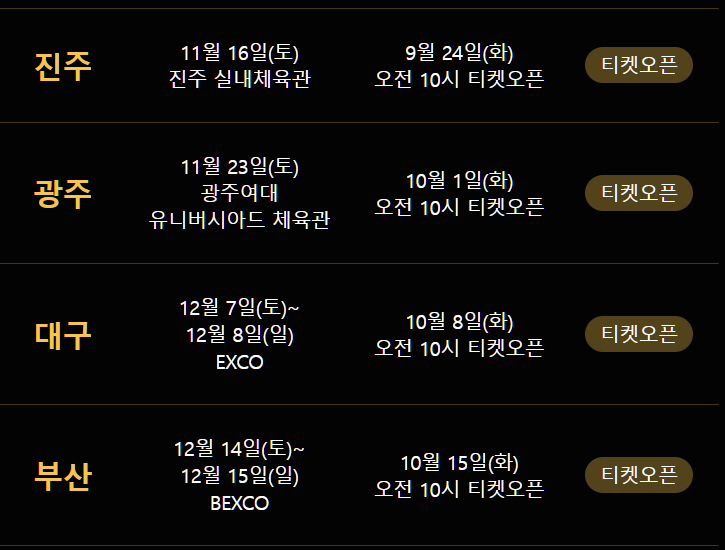 부산까지 티켓예매 일정을 공개해 두고 마지막 서울 공연 일정은 추후 공지 예정입니다.