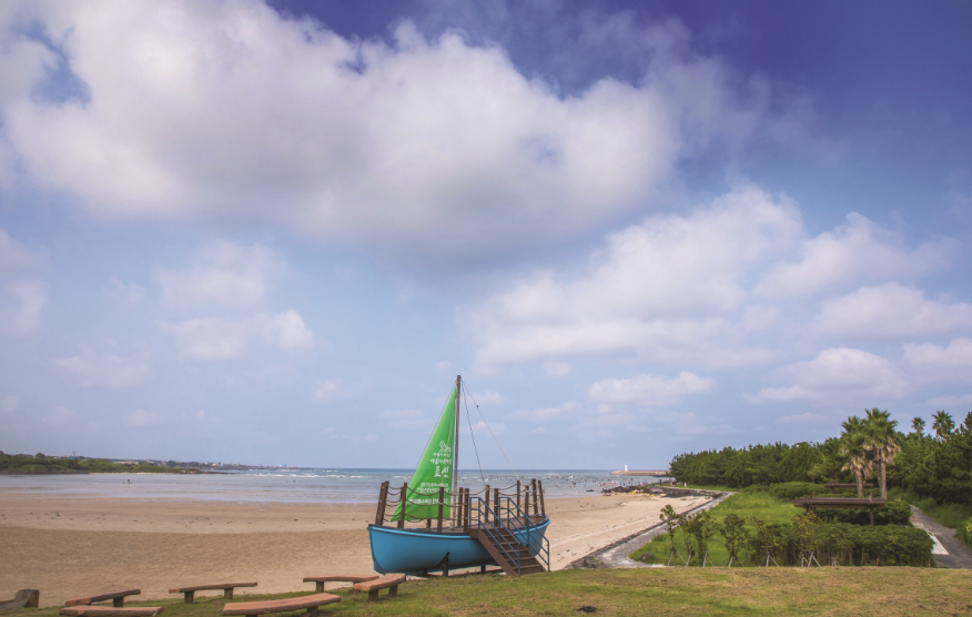 붉은 조랑말과 흰 조랑말이 극명하게 대조되는 색감이 이국적인 풍경을 선사하는 해변입니다. 이곳은 맑고 깨끗한 바닷물과 부드러운 백사장으로 유명하며, 특히 해변을 따라 늘어선 야자수와 말 모양의 등대가 이국적인 풍경을 자아냅니다. 여름철에는 해수욕과 함께 다양한 해양 스포츠를 즐길 수 있으며, 주변에는 캠핑장과 휴게소 등 편의시설이 잘 갖추어져 있어 가족 단위 여행객들에게 인기가 많습니다. 제주 도심에서 가깝고 교통이 편리해 접근성도 좋고 일몰이 아름답기로 유명합니다.