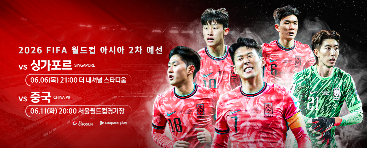 | 2024. 6. 6. 오후 9:00 | 싱가포르 vs 대한민국 | MBC, SBS, 쿠팡플레이 |